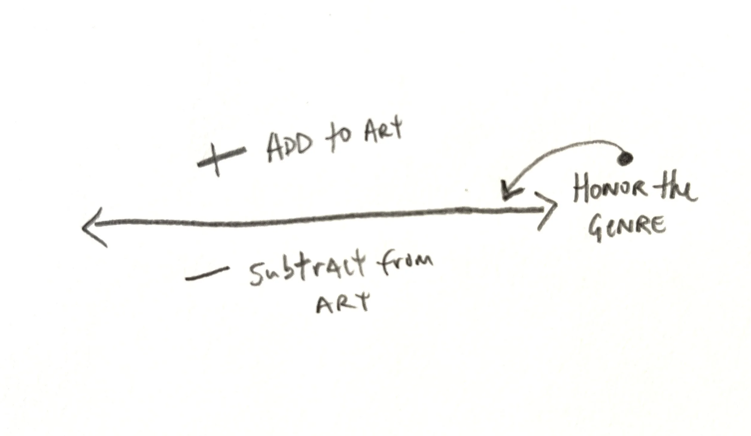We distort first by adding to what art is. This damages a couple things: first, it shows a lack of grace to artists and second, we shut the valve from on our own imaginations. By adding to what an artwork is, we steal what it can do for our imaginations. When we add, three results follow: